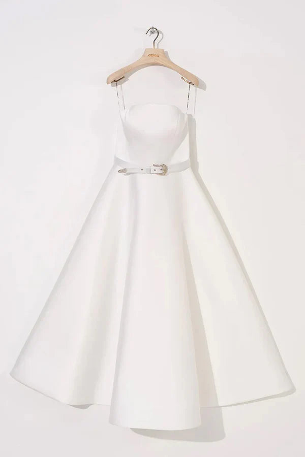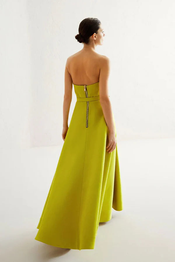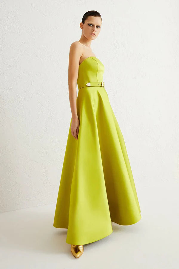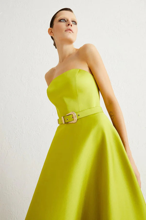 STRAPLEZ KEMER DETAYLI SATEN ELBİSE