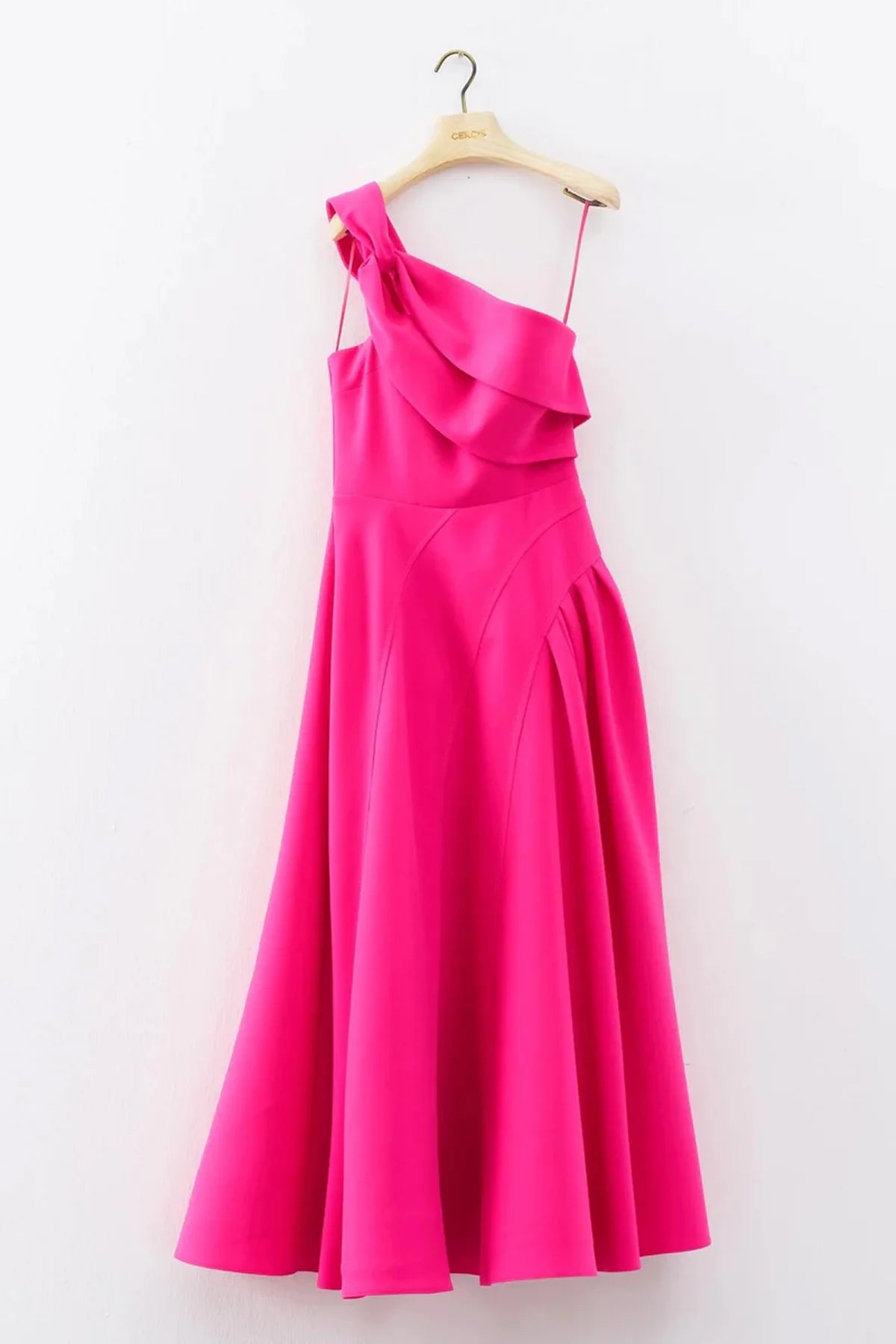 TEK OMUZ DÜĞÜM DETAYLI UZUN ABİYE ELBİSE