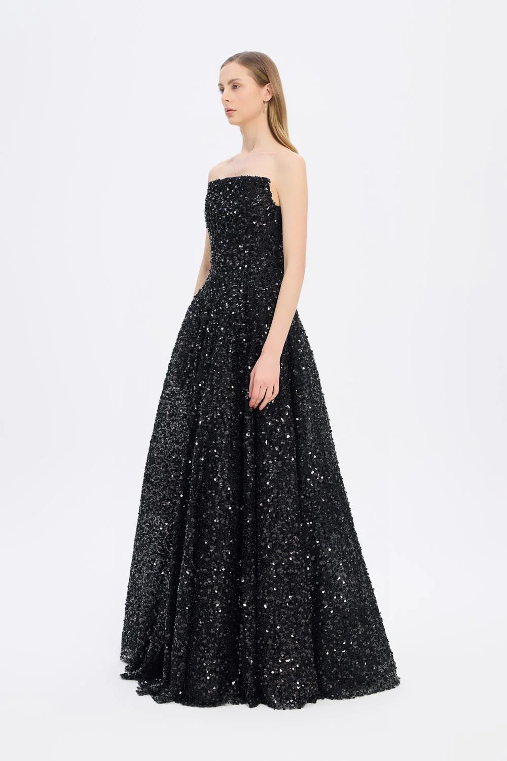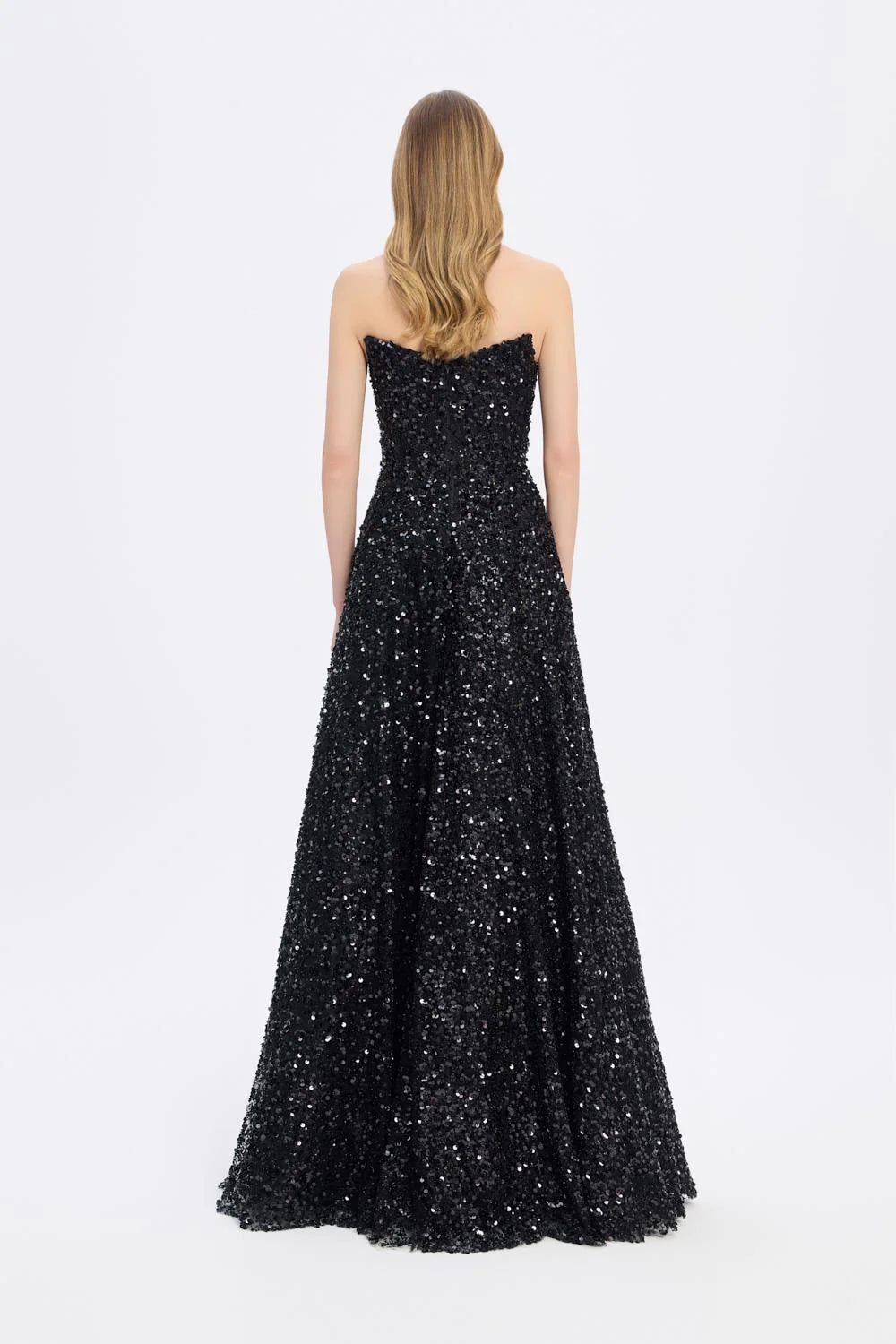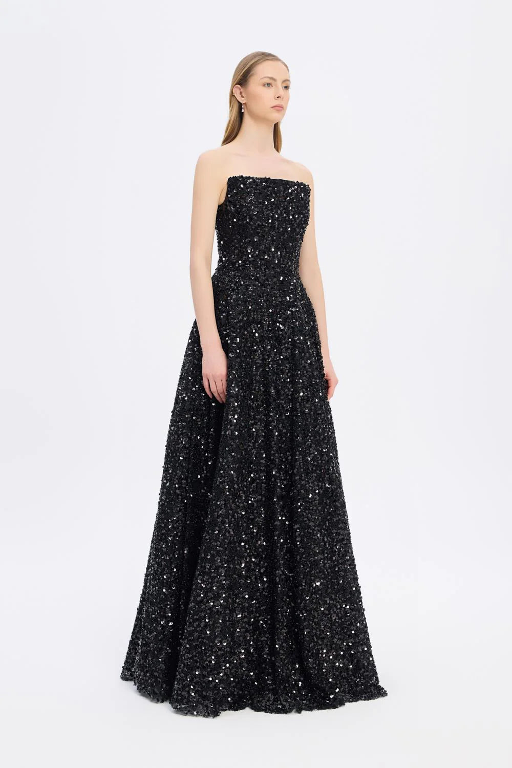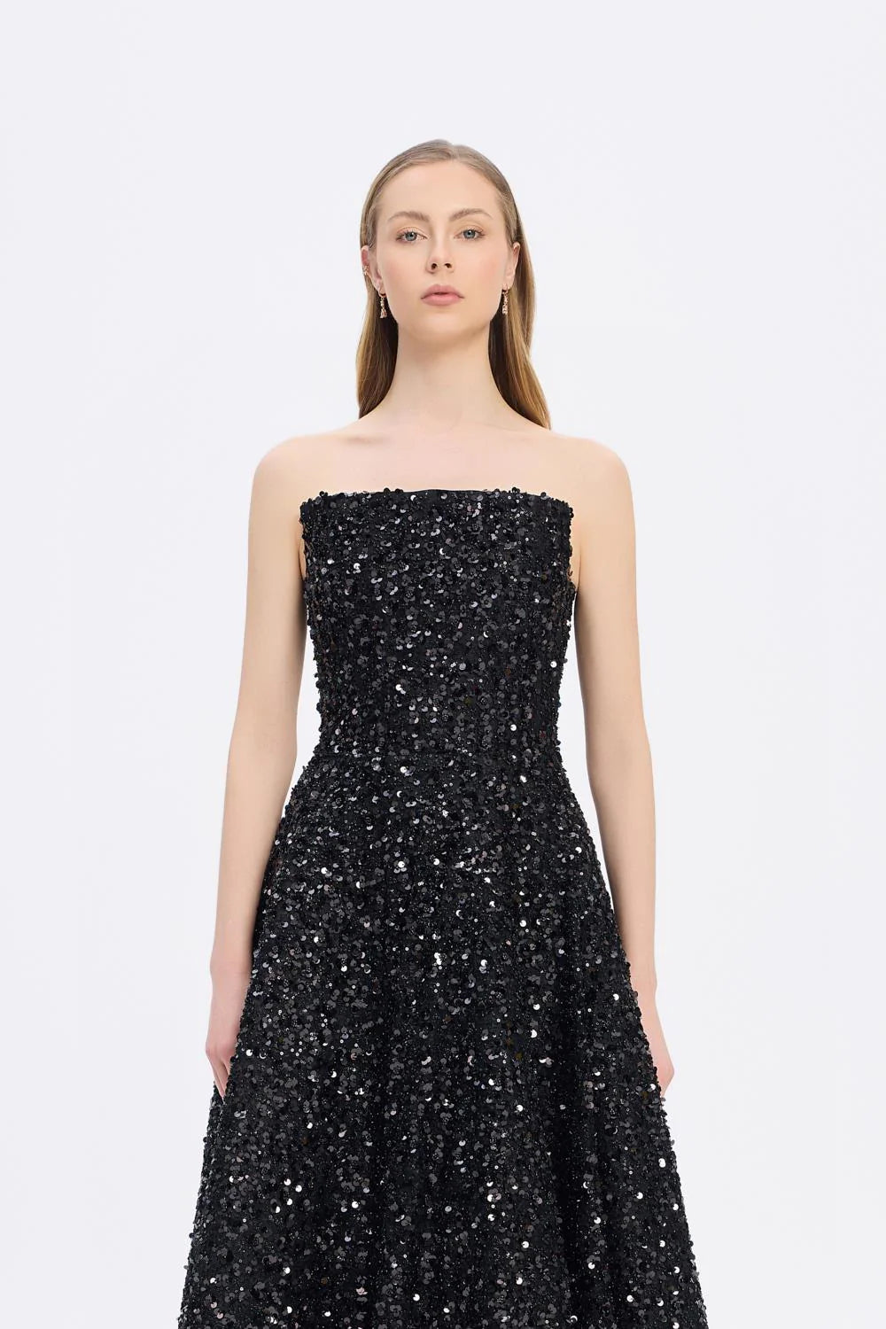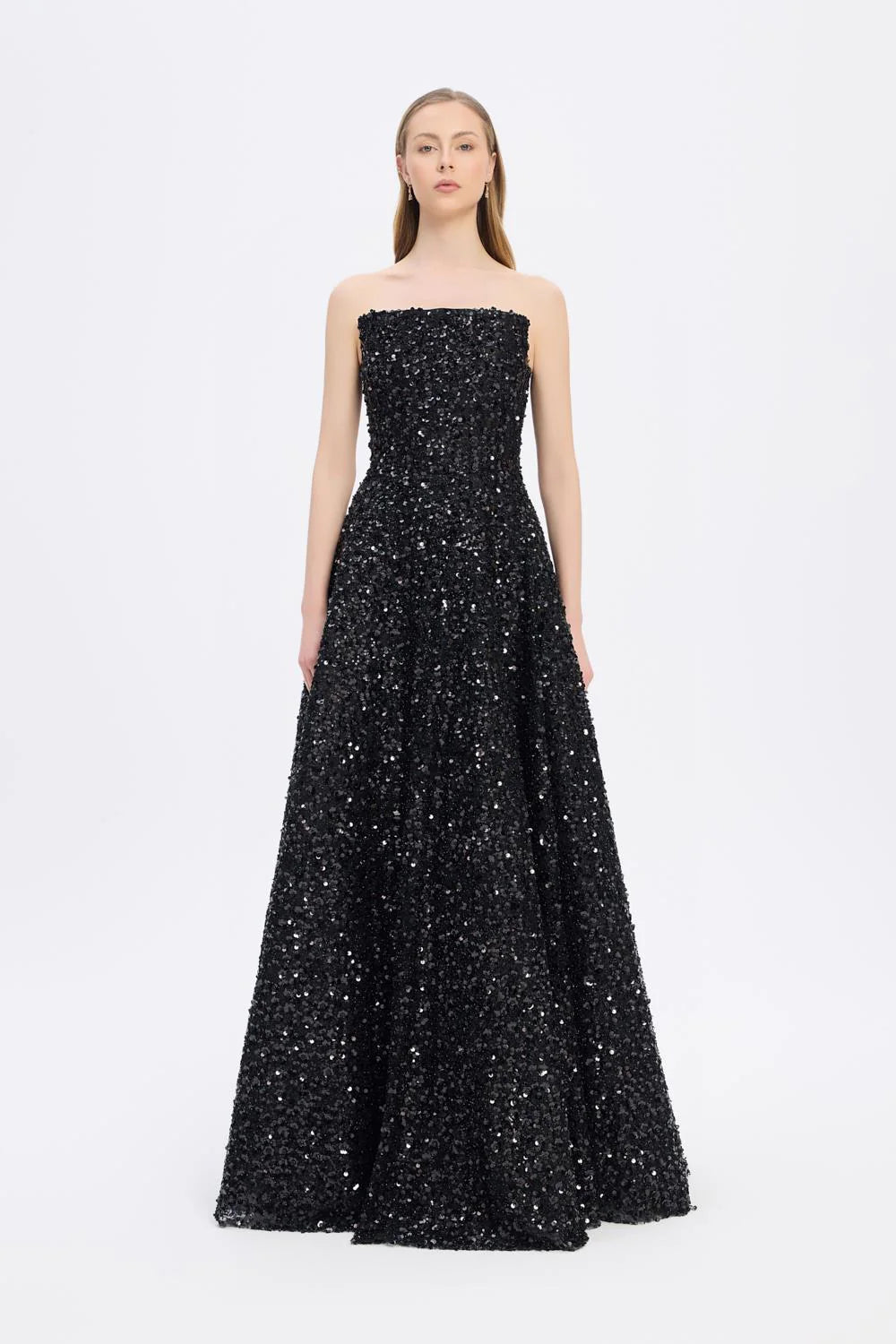 PAYET İŞLEMELİ STRAPLEZ UZUN ABİYE ELBİSE - 9331C