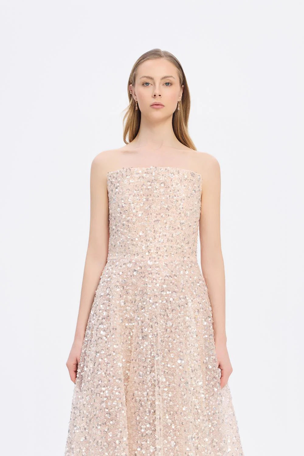 PAYET İŞLEMELİ STRAPLEZ UZUN ABİYE ELBİSE - 9331C
