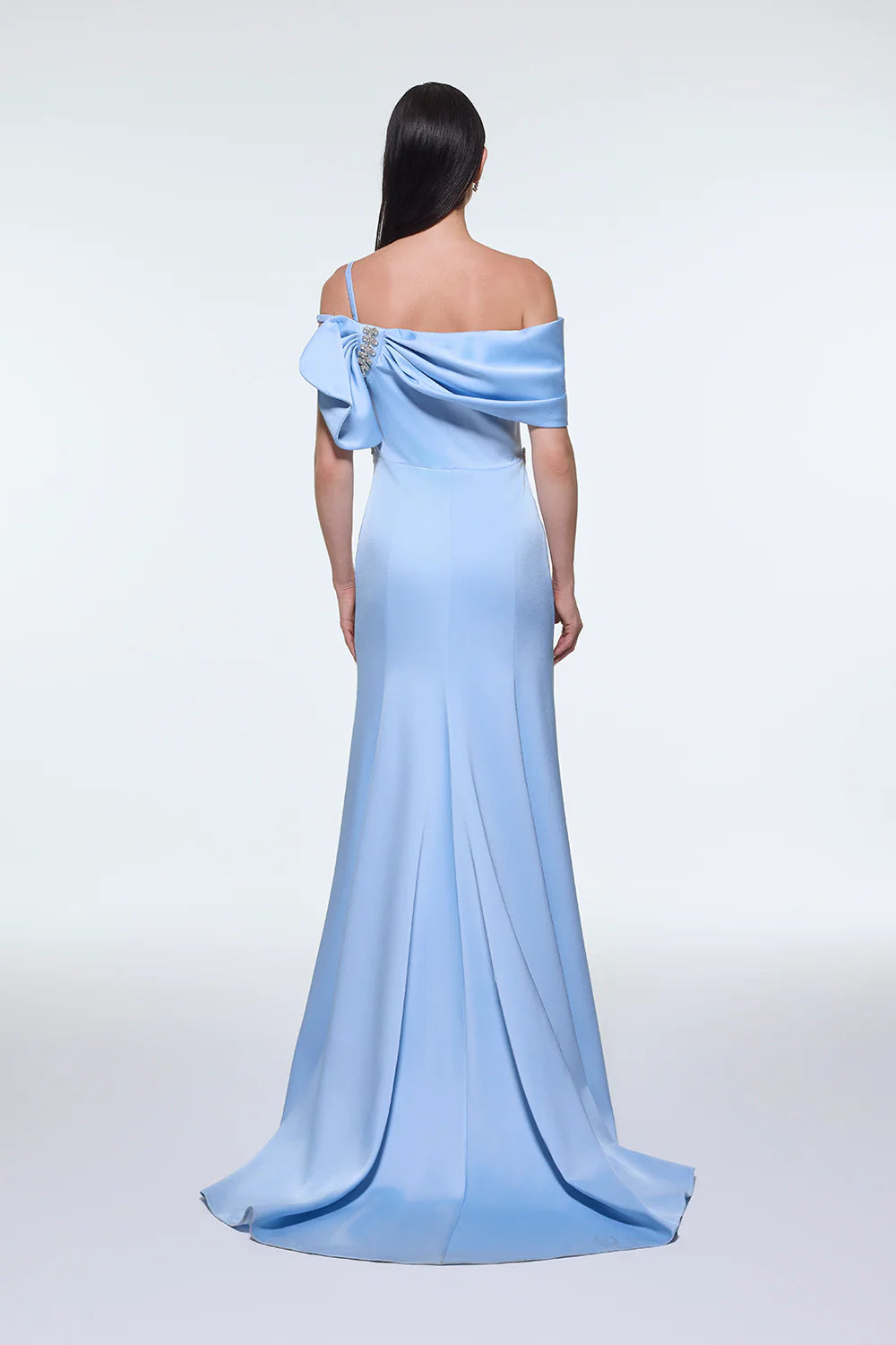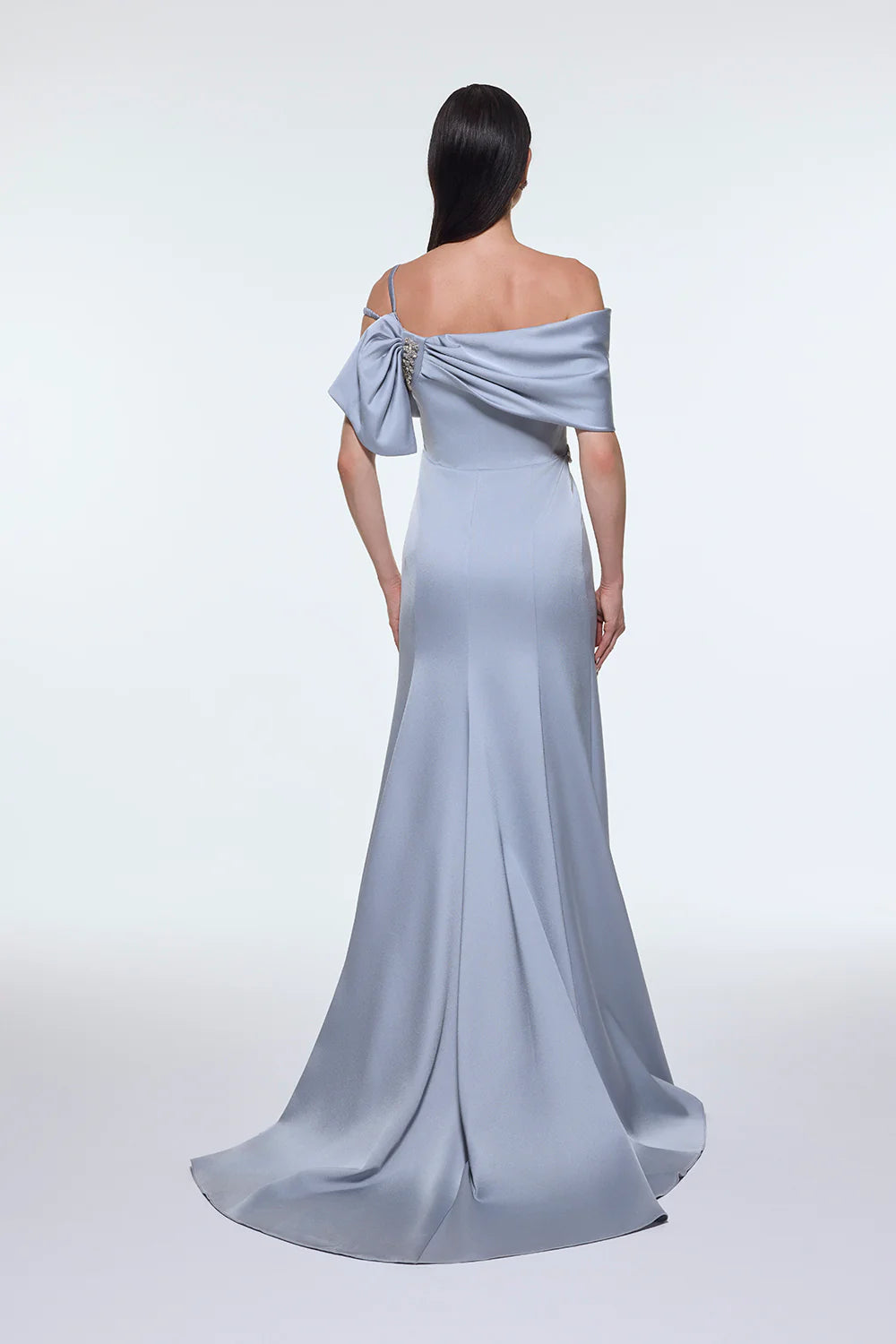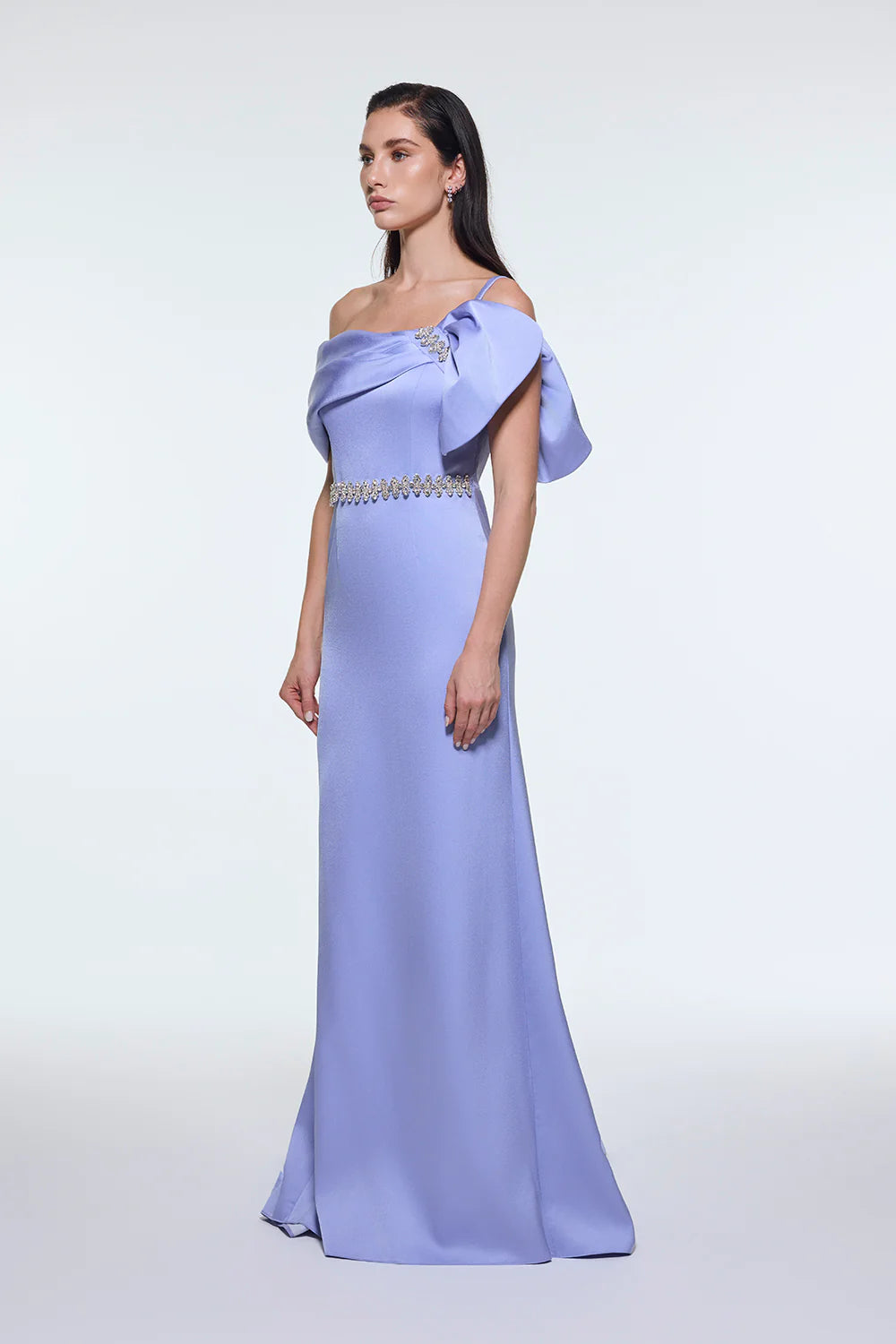 TAŞ İŞLEMELİ KEMER DETAYLI UZUN ABİYE ELBİSE - 9294C