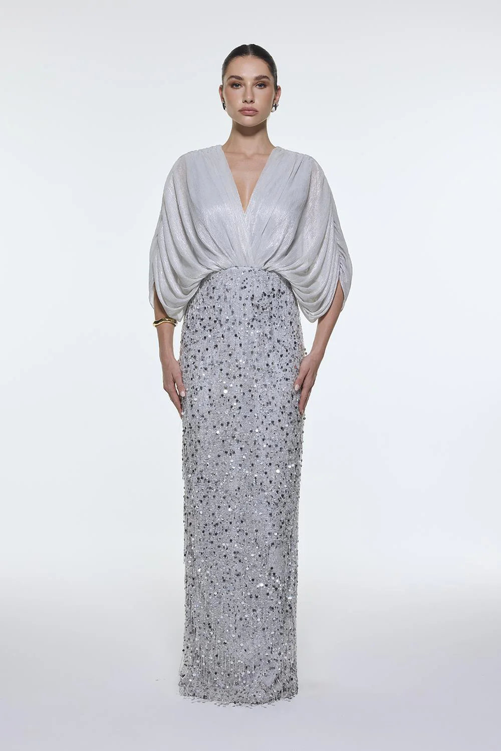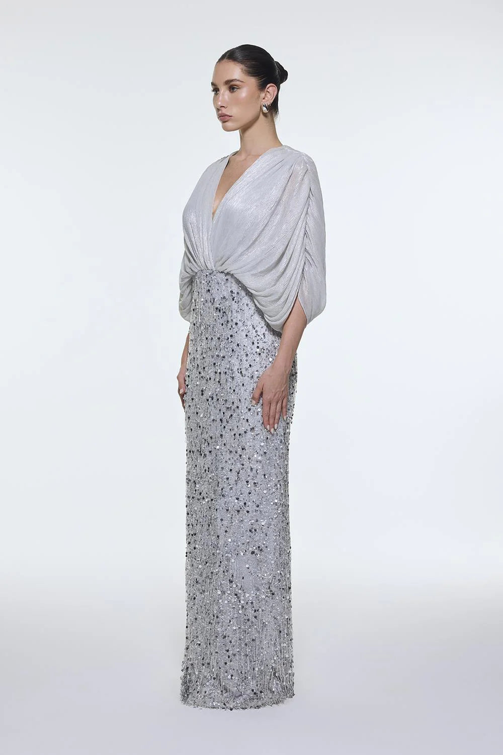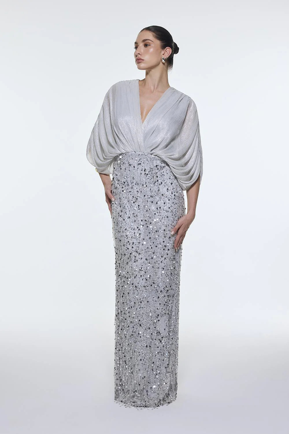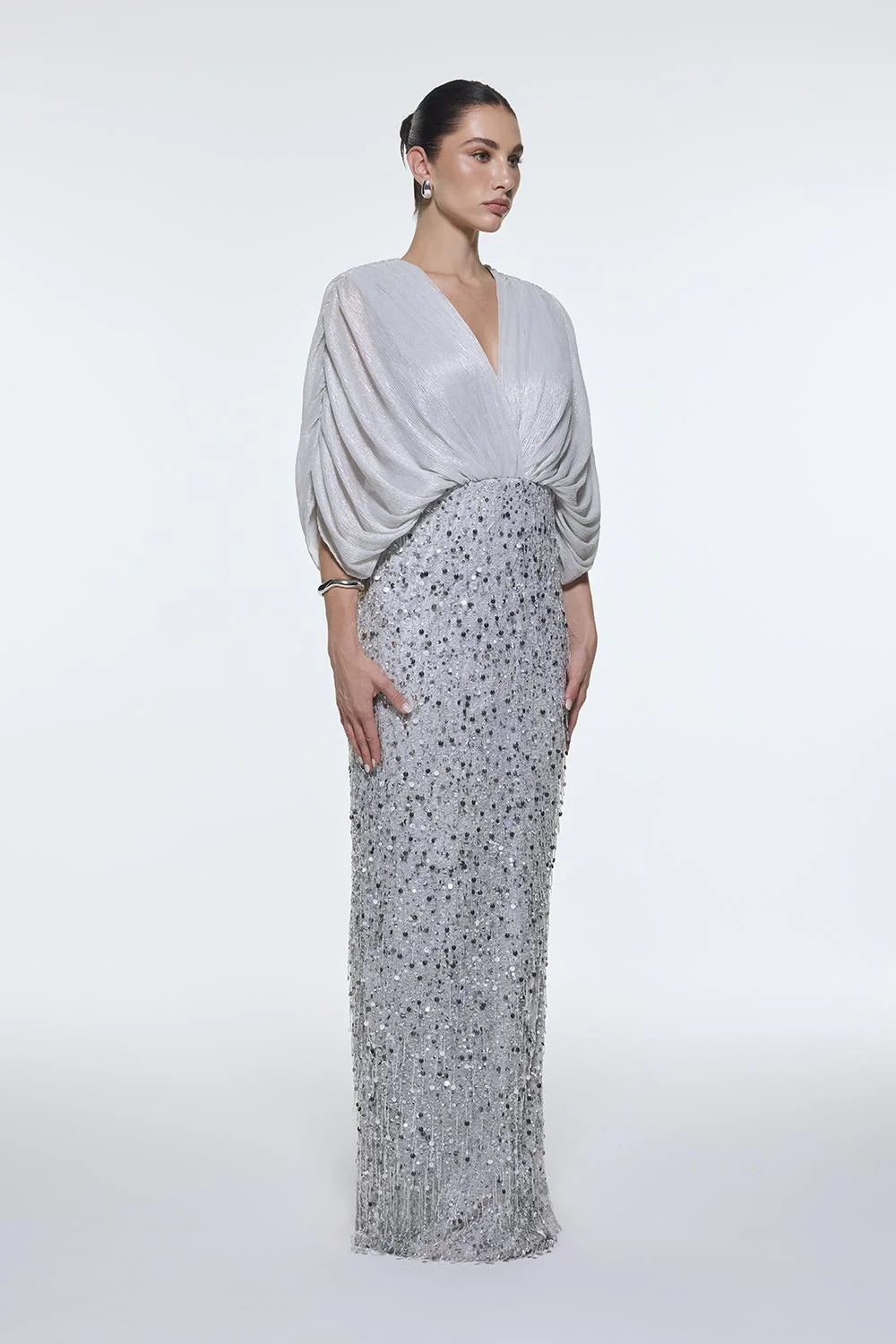 V YAKA YARSA KOLLU UZUN ABİYE ELBİSE - 9279C